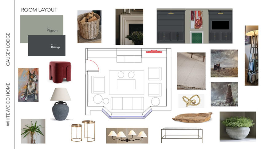 A new wall colour—a soft, grey-green—was chosen to bring warmth and cohesion, perfectly complementing the existing furnishings. This subtle palette also allows the artwork to take centre stage, adding depth and interest to the space.